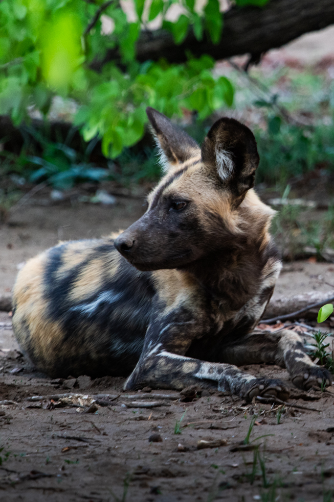 The day’s sightings were not yet at an end though. As we neared Shingwedzi we decided to take a short detour and complete a dirt track loop, the idea being we would find a shady patch to sit and enjoy a coffee and some rusks. Not two kilometers down the track did we run into one of Africa’s rarest sightings, a relaxed pack of wild dogs. Seemingly with a similar plan for the morning in mind they were spread out in the shade of a large tree. We then spent close to two hours in their company with little activity aside from the odd yawn and stretch on their part and the odd sip of coffee and click of the camera from ours. We eventually made it to Shingwedzi and set up camp.