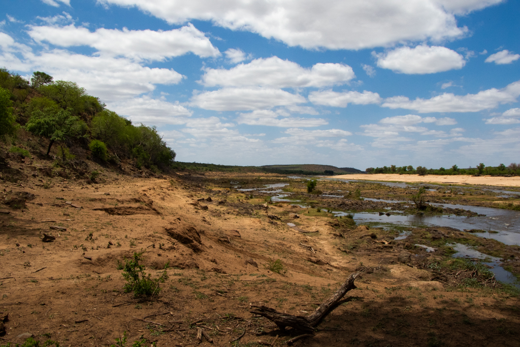 The dirt road that leads to Crooks Corner must rival any in the world for most beautiful. Driving along the banks of the Levuvhu river completely enclosed in the dense green of the Fever Trees is a spectacular experience. We were spellbound the entire way as we watched birds flitting between the trees. It must be noted that the river itself was completely dry, but this did not dampen the magic. Crooks Corner is a lookout point where one can observe the confluence of the Luvuvhu and Limpopo rivers which trisect the nations of South Africa, Zimbabwe, and Mozambique. The meeting point is marked with a beacon. When the rivers are flowing the mighty waters are really something to behold. On our first visit, however, we observed a lot of sand and not much else. To our surprise we did see a young boy of about 14 close to the Zimbabwe side marching along with a string of cattle. One of our rarer sightings, it must be said.